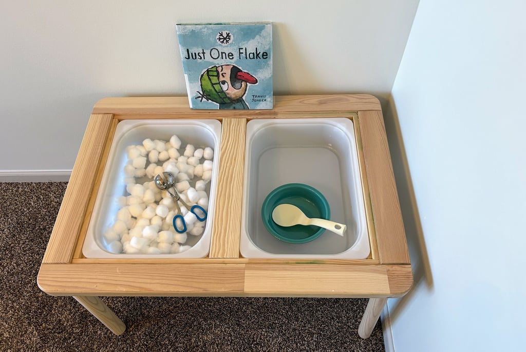 Toddlers can scoop, pinch, and move the “snowflakes” from one bowl to another, practicing fine motor skills, counting, and sorting as they go. It’s amazing how something so simple can keep little hands busy while connecting back to the story they just read.